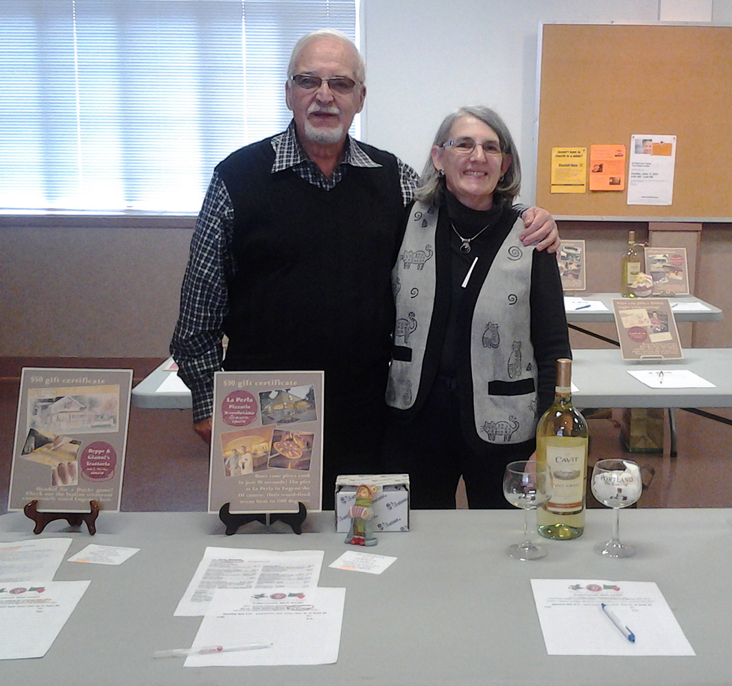 Then it was time for our club auction and potluck. St. Francis approved and so did Carlo and Audrey. In all, we raised $914. Thanks to all club members who donated items, worked the hustings to solicit donations, and to those who bought items … and yes, we know that in many cases, you were one and the same! And we hope you will support the generous businesses who contributed to our auction … Bacchi’s Italian Deli, New York New York Pizza and Deli, Cibo Restaurant, a Cena Ristorante, Gino’s Restaurant, Small Vineyards Distributing/August Wine Company, Ital’Art/Garden Home Decor, La Perla Pizzaria, Beppe & Gianni’s Restaurant, Caro Amico Restaurant, CorksCru Wine Shop, Lair Hill Bistro, Tucci Restaurant, Porcelli’s Ristorante, and Canoe Gift Shop.
